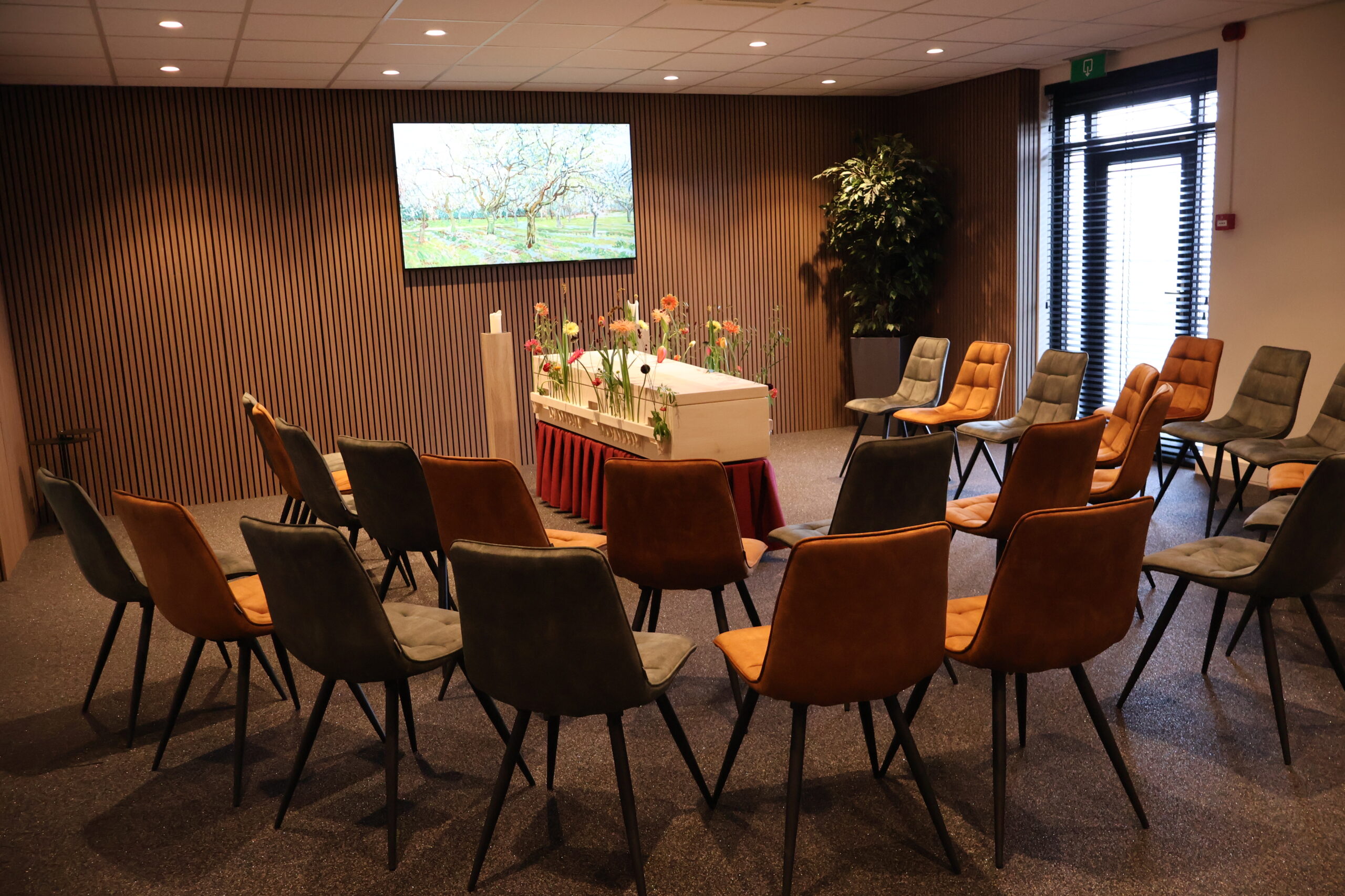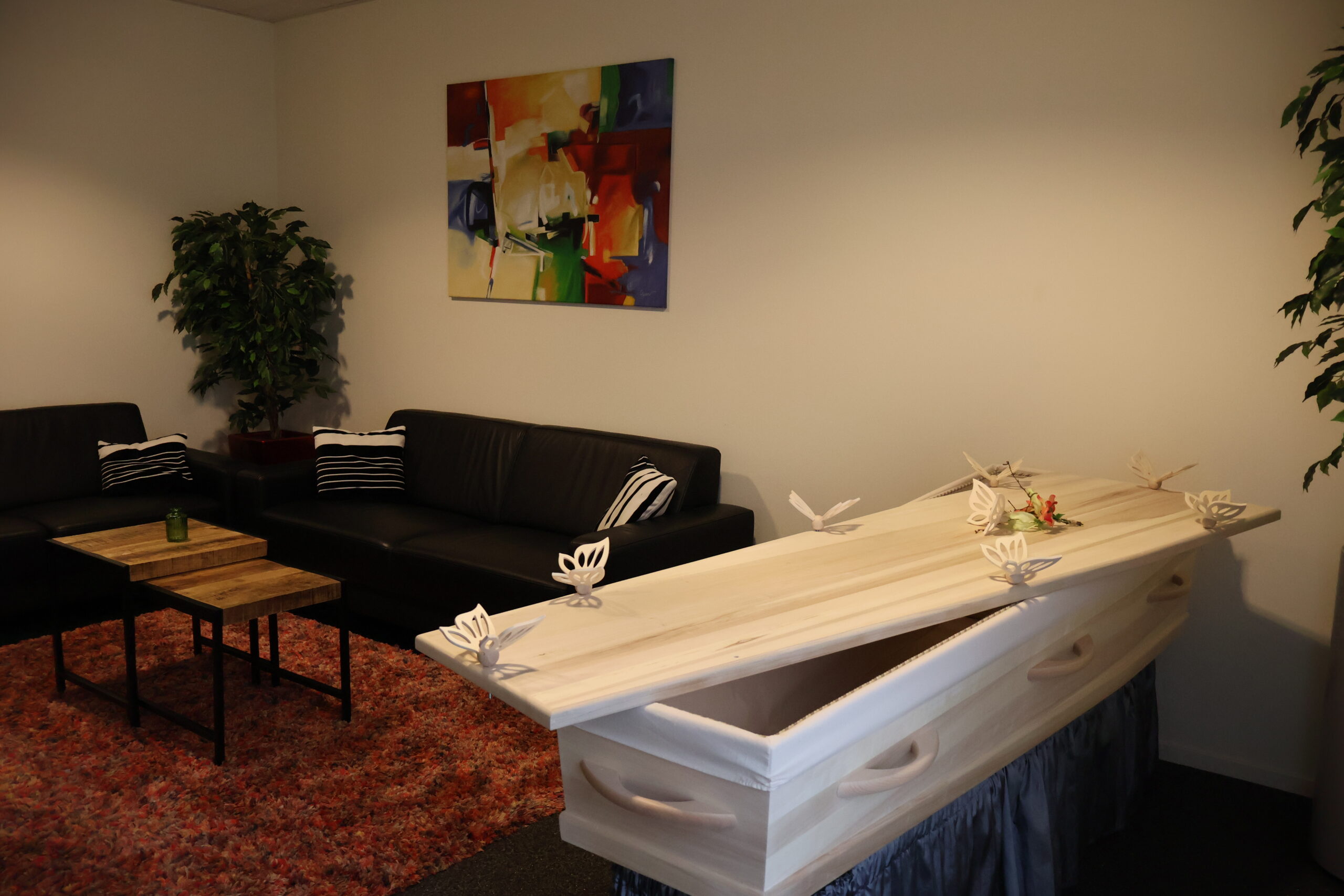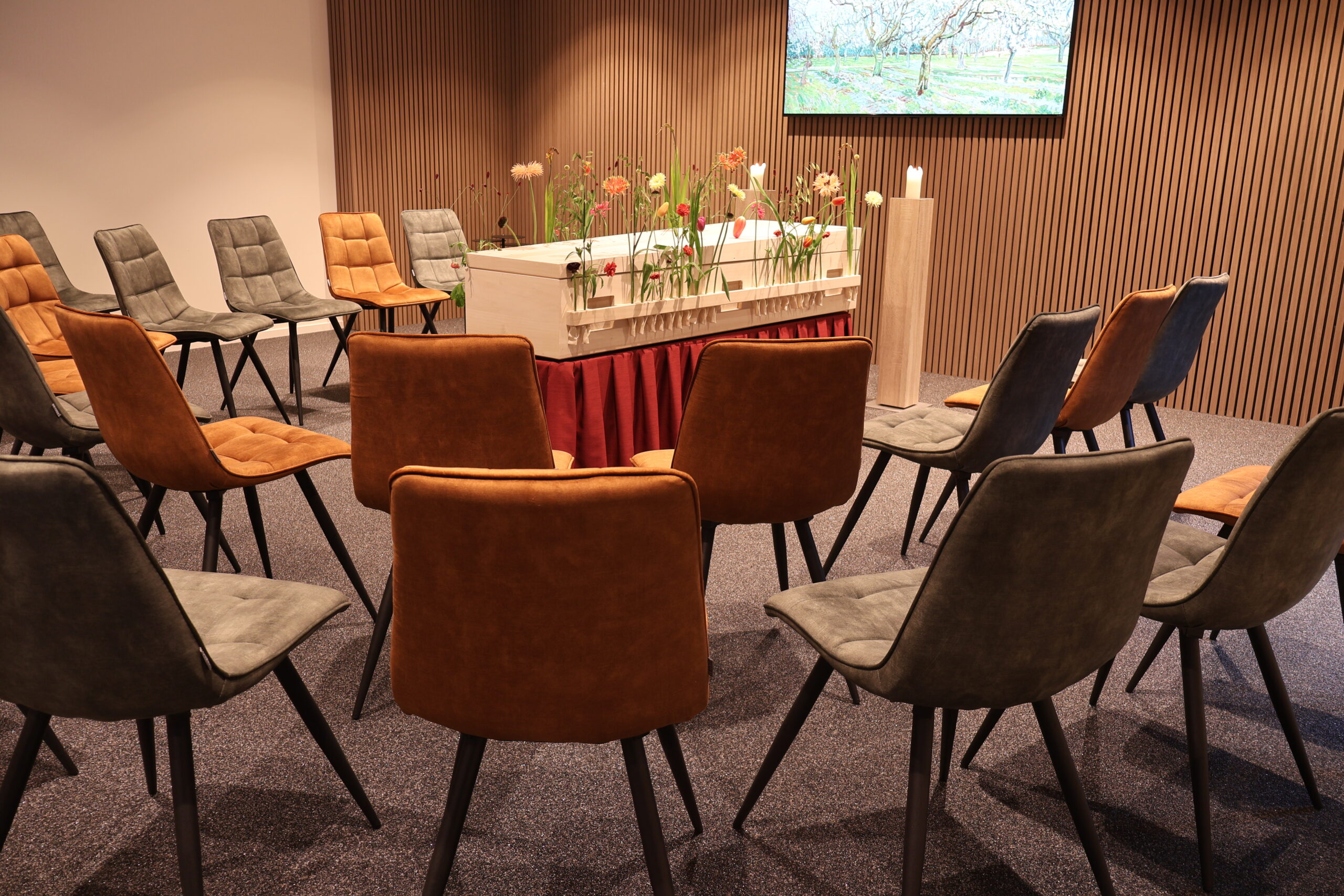 In één van de 3 familiekamers kan de naaste familie voorafgaand aan de dienst samenzijn en persoonlijk afscheid nemen van de overledene.